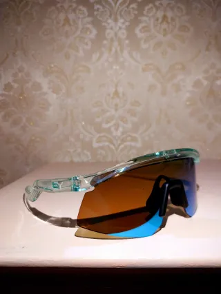 Occhiali da sole Oakley con lenti a specchio. Nuovi compresi di tutto senza cartellino. - Montatura trasparente. - Lenti azzurre.