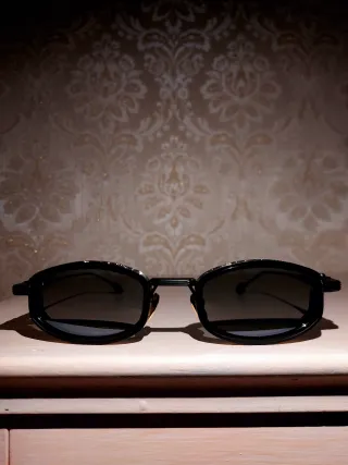 Occhiali da sole Jacques Marie Mage in una elegante tonalità nera. Nuovi compresi di tutto. Ottima alternativa per chi non vuole spendere tantissimo per un paio di occhiali di questo calibro. - Montatura in acetato nero. - Lenti sfumate grigie. - Design distintivo.