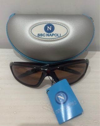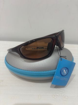 Occhiali da sole ufficiali SSC Napoli con lenti Polaroid. - Montatura marrone - Lenti marroni. - Custodia rigida inclusa.