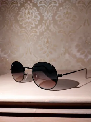 Occhiali da sole Ray-Ban con montatura rotonda. Nuovi compresi di tutto senza cartellino. - Montatura nera. - Lenti sfumate grigio.