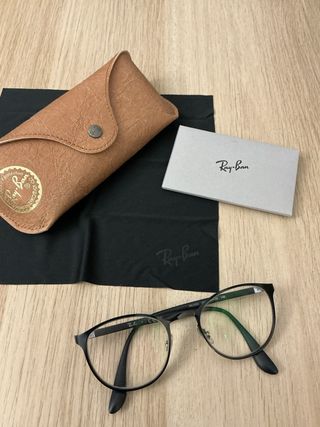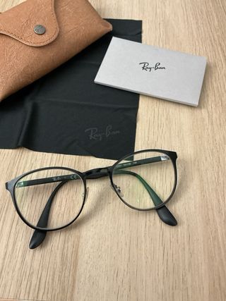 Occhiali da vista Ray-Ban con montatura nera. - Custodia originale inclusa. - Panno per la pulizia. - Scatola Ray-Ban. - Lenti graduate.