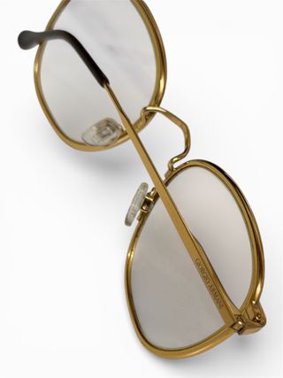 Occhiali vintage Giorgio Armani, com montatura placcata in oro e lenti trasparenti.