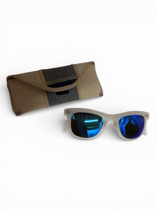 Occhiali da sole geometrici Italia Independent Eyeye bianchi con lenti a specchio blu.
