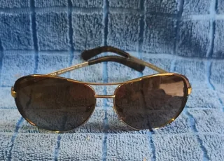 Occhiali da sole Michael Kors con montatura color oro e lenti marroni originali con custodia ( compatibile) - Montatura in metallo dorato. - Lenti con sfumatura marrone. - Design aviator.