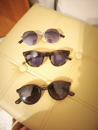Occhiali da sole Havaianas con montatura marrone. - Montatura rotonda. - Lenti sfumate. Gli altri due sono di h&m