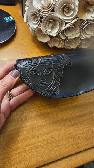 Elegante montatura per occhiali da vista Versace, adatta sia per uomo che per donna. Un accessorio raffinato per il tuo look quotidiano. - Montatura in metallo argentato e inserti neri. - Design moderno e sobrio. - Made in Italy.