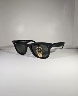 NUOVI Occhiali da sole Ray-Ban modello wayfarer 2140 - Montatura nera opaca, matte - Lenti verdi - Taglia 50mm - Custodia originale inclusa. - Panno per la pulizia.