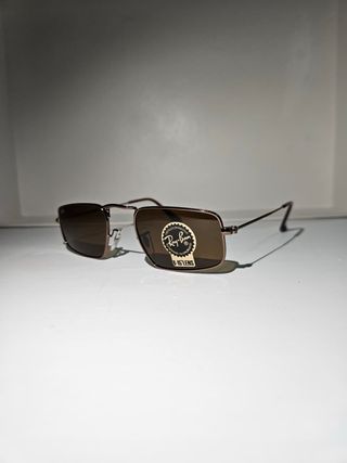 Occhiali da sole Ray-Ban modello Julie con lenti marroni. - Montatura metallica sottile. - Lenti con protezione UV. - Design squadrato moderno.