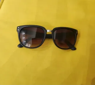 Eleganti occhiali da sole con montatura nera. Vengono forniti con una custodia protettiva gialla. - Montatura squadrata. - Lenti scure. ho lo scontrino(prezzo 130)