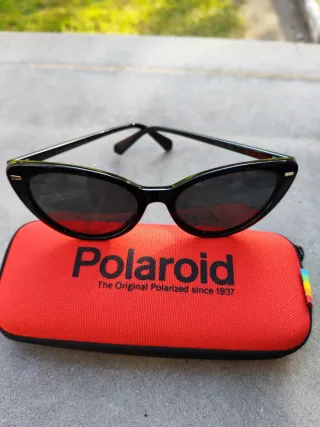 Occhiali da sole Polaroid con montatura nera. - Lenti polarizzate. - Custodia rigida Polaroid inclusa.