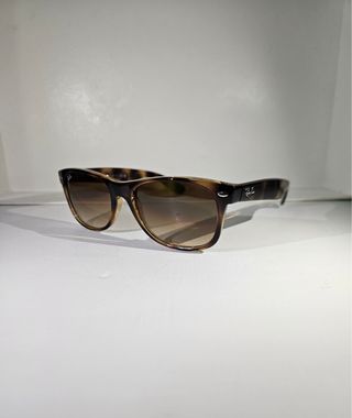 Occhiali da sole Ray-Ban modello Wayfarer con una classica montatura tartarugata. - Montatura in acetato. - Lenti sfumate marroni.