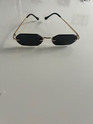 Eleganti occhiali da sole con montatura dorata e lenti nere. - Lenti sfumate. - Montatura sottile e resistente. - Design moderno.