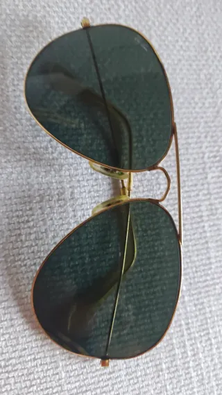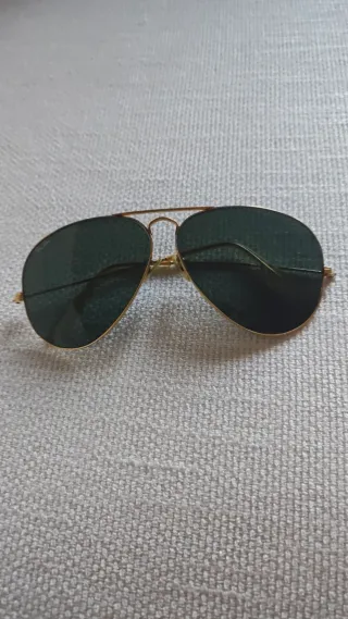 Iconici occhiali da sole Ray-Ban modello Aviator. ORIGINALI - Montatura color oro. - Lenti verdi. - Design classico e intramontabile.