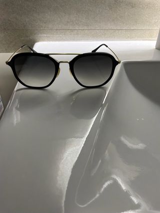 Occhiali da sole Ray-Ban modello da donna. - Montatura nera con dettagli oro. - Lenti sfumate montate graduate. Possibilità di rimettere le lenti originali polarizzate in dotazione. NO PERDITEMPO NE SCAMBIÒ. TRATTABILE FINO A 60€