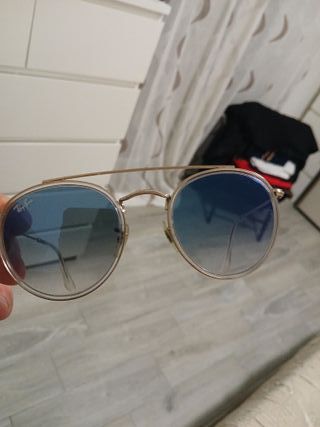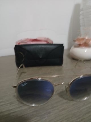 Occhiali da sole Ray-Ban con lenti sfumate. - Montatura color oro. - Lenti con tonalità blu. - Logo Ray-Ban sulle lenti.