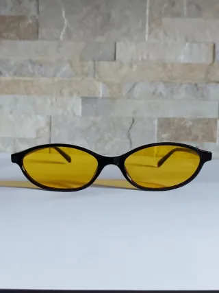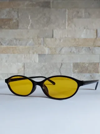 Occhiali da sole con montatura nera e lenti di colore giallo. Un accessorio di stile. - Montatura in plastica resistente. - Lenti ovali.