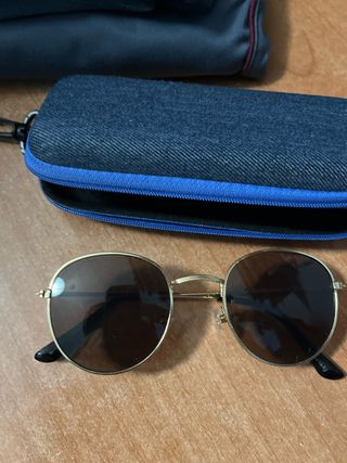 Occhiali da sole Ray-Ban modello Round Metal. - Montatura color oro. - Lenti verdi. - Forma rotonda. Come nuovi, Usati pochissimo