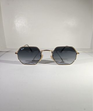 Occhiali da sole Ray-Ban con montatura color oro e lenti sfumate grigie. - Montatura metallica a forma ottagonale. - Lenti con protezione UV.