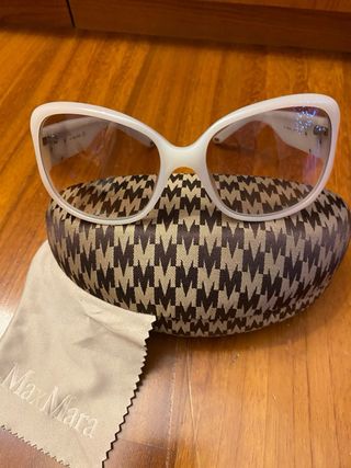 Eleganti occhiali da sole Max Mara in una raffinata tonalità bianca. Inclusa custodia e panno per la pulizia. - Montatura in acetato. - Lenti con protezione UV. - Design a farfalla.