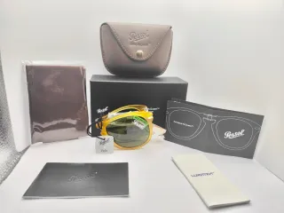 Vendo bellissimi Persol Steve McQueen Colore Terra di Siena Filtri azzurro chiaro Calibro 54 Gli occhiali sono nuovi con ancora le plastiche protettive Includo kit completo di scatola custodia pezzuola e certificato di autenticità