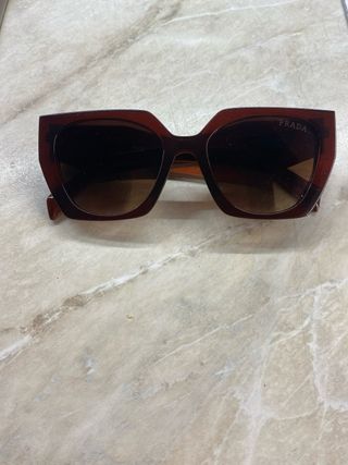 Occhiali da sole Prada originali con montatura marrone. - Design moderno e accattivante. - Lenti sfumate per una visione confortevole.