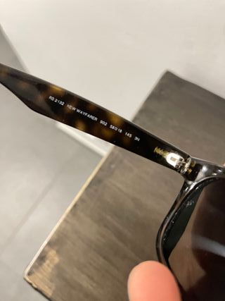 Vendo occhiali da sole Ray-Ban con segni di usura su lenti e montatura (come si può vedere dalle foto). Le astine in silicone si presentano lievemente appiccicose. La custodia è compresa.