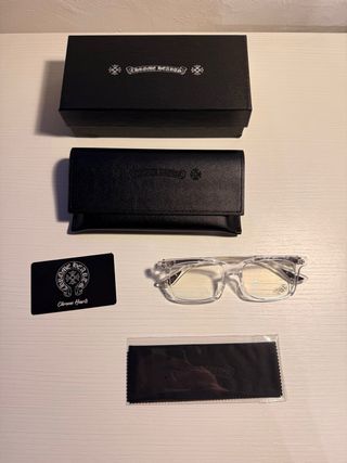 Occhiali da vista Chrome Hearts. - Montatura trasparente. - Custodia nera. - Panno per la pulizia.