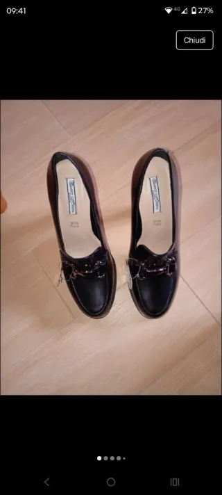 Eleganti scarpe con tacco del marchio Queen Helena. - Modello a punta con dettaglio a catena. - Tomaia in pelle lucida. - Tacco alto e stabile