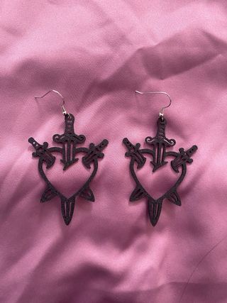 Orecchini con il 3 di spade dei tarocchi, realizzati con stampante 3D e finiti a mano. Anche bianchi 🖤 #goth #gothic #punk #witch #witchy #alt #gotico #darkstyle #darkacademia #emo #alternativestyle #stampa3D #3Dprinted #handmade #aesthetic #witchyaesthetic #altfashion #darkfashion #tarot #tarocchi