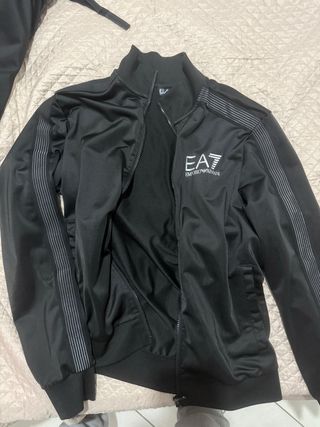 Tuta sportiva Emporio Armani EA7. - Logo EA7 sul petto. - Strisce grigie sulle maniche e sul colletto. - Zip frontale. Prezzo trattabile