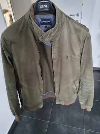 Bomber con un design trapuntato e un colletto a costine, taglia L circa 48/50 - Chiusura con zip frontale. - Tasche laterali con zip. - Polsini e fondo a costine.