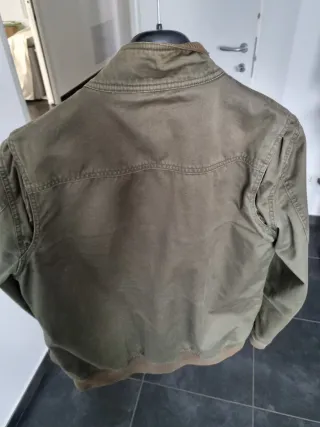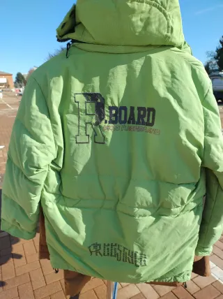 Giacca invernale di colore verde, taglia M/152. - Cappuccio con pelliccia sintetica. - Chiusura con zip e bottoni. - Logo R ricamato sul petto.