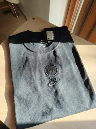Maglietta Nike da uomo, colore nero. Presenta lo stemma del PSG ricamato sul petto. - Logo Nike ricamato. - Stemma PSG ricamato. - Vestibilità ampia