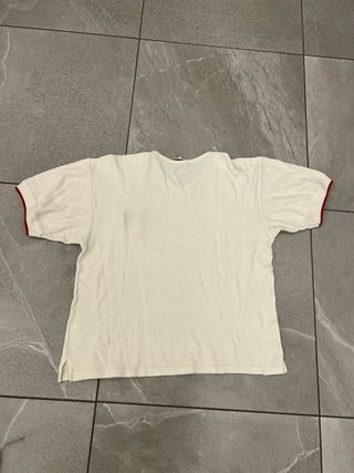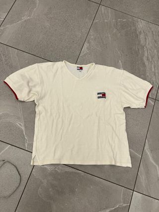 T-shirt a maniche corte con scollo a V. - Logo Tommy Hilfiger sul petto. - Bordi rossi sulle maniche e sul colletto. - Tessuto a coste.