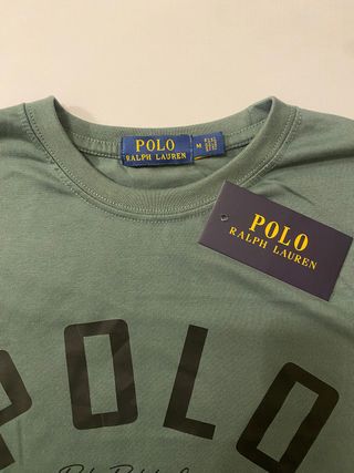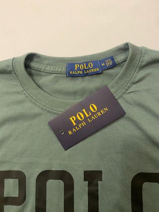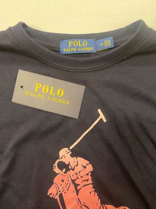 T-shirt Polo Ralph Lauren con un grande logo sul davanti. - Logo POLO a contrasto. - Scritta Polo Ralph Lauren in corsivo sotto il logo principale.