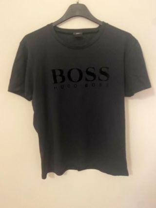 T-shirt Hugo Boss nera con logo. - Logo in rilievo sul petto.