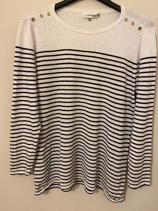 Maglia a maniche lunghe con classico motivo a righe. - Design a righe orizzontali. - Dettagli con bottoni dorati sulle spalle. - Scollo rotondo.