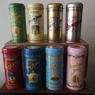 Set di miniature vintage della linea Jeans di Versace. Una collezione unica per gli appassionati del brand. - Include diverse fragranze iconiche. - Perfetto per collezionisti. - Miniature da collezione.
