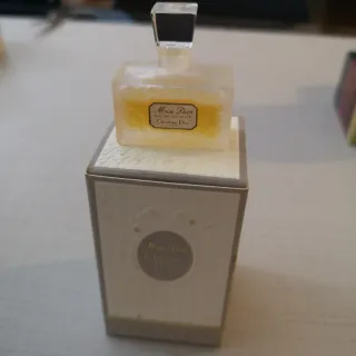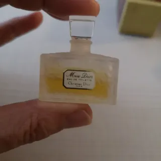 Miniatura vintage da collezione di Miss Dior Eau de Toilette. - Profumo da collezione. - Bottiglia in vetro con tappo nero. - Etichetta Miss Dior Eau de Toilette Christian Dior.