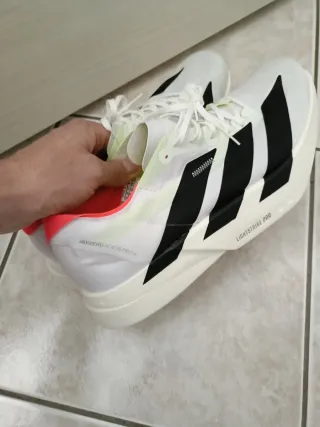Scarpe da corsa Adidas Adizero Adios Pro 4.tagloa 43 1/3 - Design bianco e nero. - Tecnologia Lightstrike Pro.