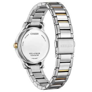 Orologio solo tempo da donna di Citizen della collezione Of Classic Lady. Ha: cassa in acciaio bicolore oro e rosa di diametro 30MM; quadrante chiaro con indici applicati; bracciale in acciaio integrato bicolore oro e rosa con chiusura di sicurezza a pulsante; resistenza all'acqua di 5 ATM; movimento Eco Drive; vetro minerale. Funzione datario: no. La referenza è EM0895-73A Questo solo tempo verrà spedito con Scatola Originale Citizen GARANZIA UFFICIALE 2 ANNI ( ITALIA 5 ANNI )