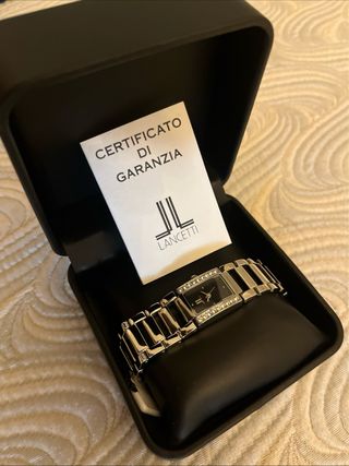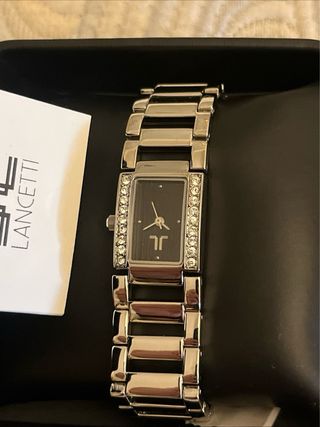 Elegante orologio da polso da donna Lancetti, con un design raffinato. Nuovo con etichetta e garanzia. - Cassa rettangolare con dettagli luminosi. - Bracciale in metallo.