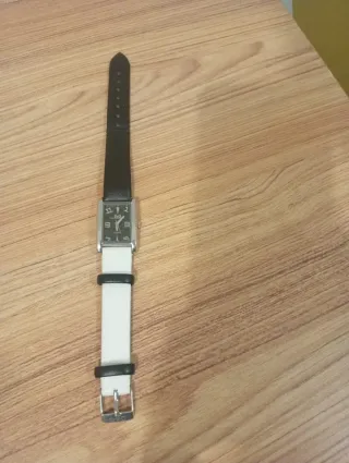 Elegante orologio da polso da donna marca Reporter, tenuto in condizioni eccellenti e usato pochissimo. - Cinturino in pelle nera. - Cassa rettangolare silver. - Quadrante nero con numeri stilizzati.