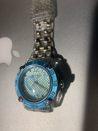 Orologio Sweet Years con cinturino trasparente e quadrante blu. Pila da sostituire mai usato - Cassa e cinturino in materiale trasparente. - Lunetta blu con numeri. - Logo Sweet Years sul quadrante.