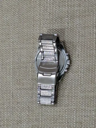 Elegante orologio da polso da uomo con un design moderno. - Cassa e bracciale in metallo color argento. - Quadrante di colore marrone sfumato. - Resistente all'acqua fino a 165 piedi.