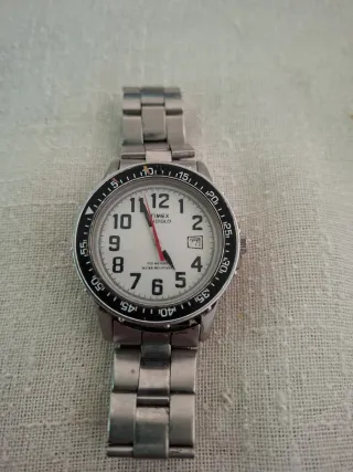 Orologio da polso da uomo Timex con cinturino in metallo. - Quadrante bianco. - Indiglo. - Resistente all'acqua fino a 100 metri.