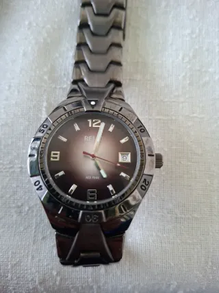 Orologio da polso Laurens con cassa e cinturino in metallo. - Lunetta girevole di colore rosso. - Quadrante nero con indici a bastone. - Resistente all'acqua 5 ATM.