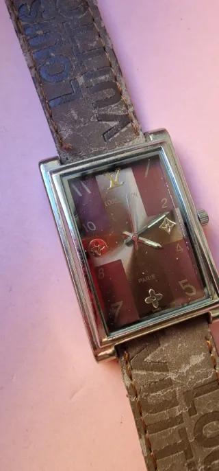 Elegante orologio Louis Vuitto con cinturino da cambiare - Cassa rettangolare. - Cinturino marrone con logo LV. - Quadrante con finitura metallica e dettagli dorati. Avviso: che l'orologio non cammina necessita di batteria Viene Venduto come non funzionante.