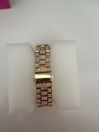 Orologio elegante con incastonatura di pietre preziose che conferiscono uno splendore straordinario. Il suo design accattivante lo rende perfetto per occasioni speciali. Finitura in tonalità dorata. Dettagli di pietre preziose brillanti.