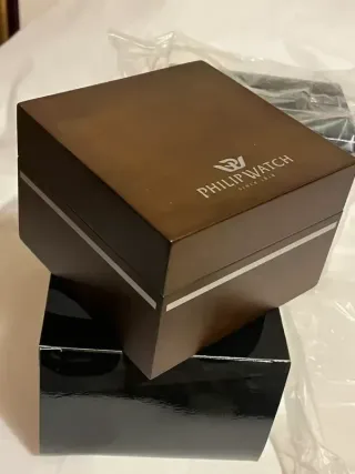 Elegante scatola per orologio Philip Watch, perfetta per conservare o presentare il tuo prezioso segnatempo. La scatola è nuova e si presenta in ottime condizioni. Bella scatola di lusso-custodia per orologi del marchio prestigioso svizzero Philip Watch since 1858 completa di scatola esterna in cartone nero lucido e cellophane,della scatola interna in legno pregiato al cui interno c’è’ il cuscinetto anch’esso firmato su cui si avvolge l’orologio.Dimensioni scatola esterna 13x13x9 cm in altezza,peso circa 500grammi.Disponibili più’ unità’,vero fondo di negozio da chiusura attività’,prezzo fisso per unità’,sconti per acquisti multipl